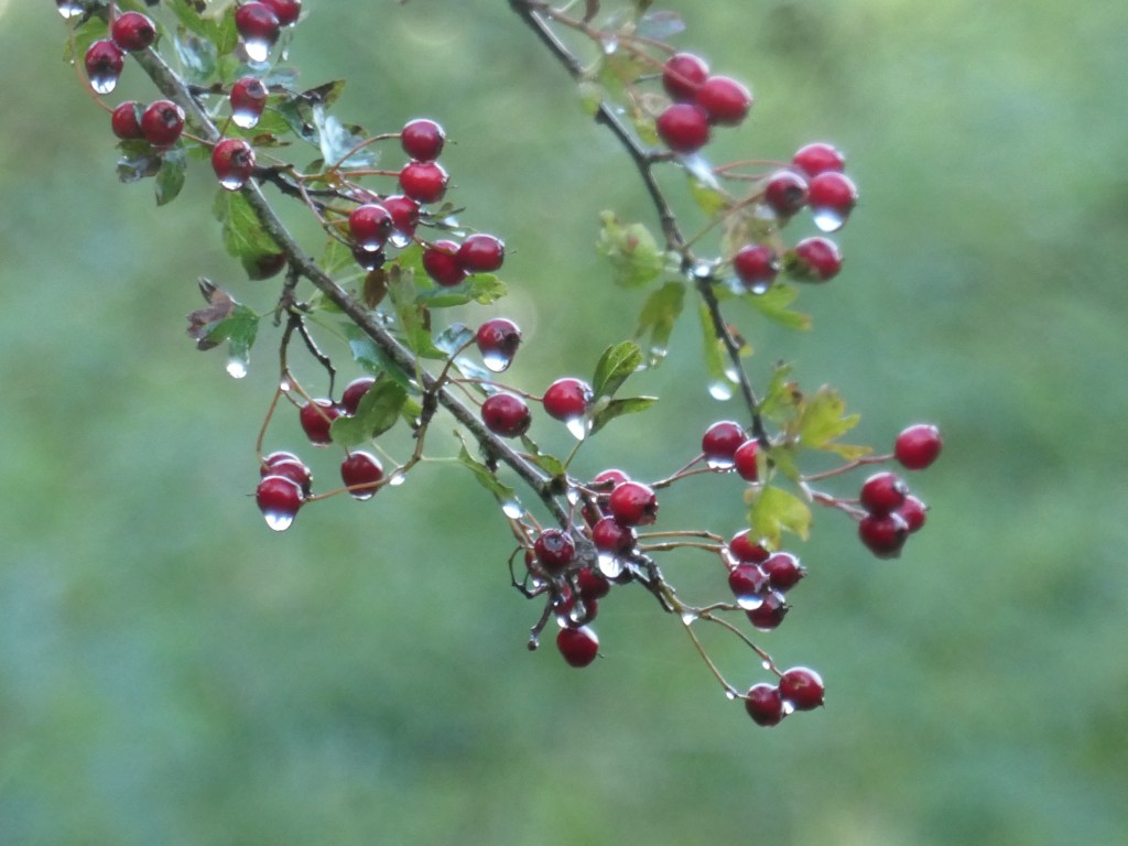 There is an area of Molly’s Wood, which we have decided to leave to its own devices, only cutting a few paths to make it accessible. It is the triangle of land that runs along the long path adjacent to Hull’s Mill Lane. The hawthorn is the tree which is most conspicuously colonising this area. It is a true pioneer, quickly taking over grassland that is left ungrazed or uncut. For some it is called ‘scrub’ and seen as worthless, for me it is the opposite of that. It is a special tree favoured by wildlife. Its dense thorny branches providing a haven for nesting birds (particularly the red-listed linnet and whitethroat), whilst its whitey/pink blossoms cast a sweet aroma over the landscape in May. In the autumn and winter its red berries are a crucial food supply for the wintering thrushes arriving from the far North. It has for long been the staple tree of hedgerows, creating a thorny barrier for stock and is known as quickthorn for obvious reasons.