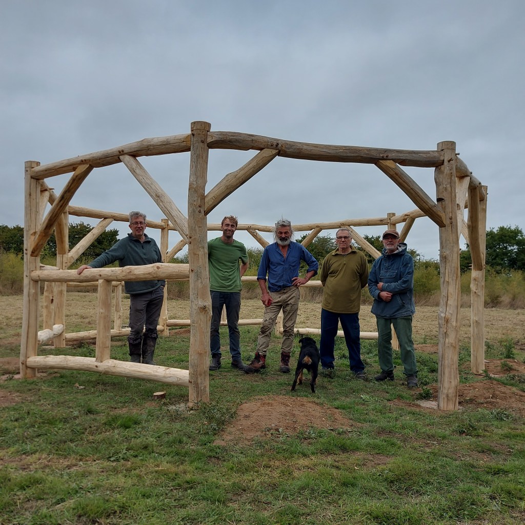 Having been awarded a generous grant from Braintree Council we have been able to build a beautiful outdoor classroom / shelter. We are thrilled with the structure which has been designed and hand built by Olly Moses and a team of local craftsmen. It is made entirely from locally sourced wood, mostly Chestnut. It is a fabulous addition to Molly’s Wood. We love it!