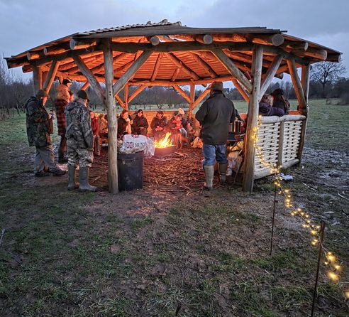 We held our first Wassail on 7th February! The evening was full of spiced cider, homemade buns, music, fire and a blessing of the orchard. Thanks to our beautiful new outdoor classroom, and wood donated by Hulls Mill, we were able to stay warm and dry despite the drizzle. We are planning to make this an annual event and hope you can all join us next year. Here is to a bumper crop of apples this autumn!